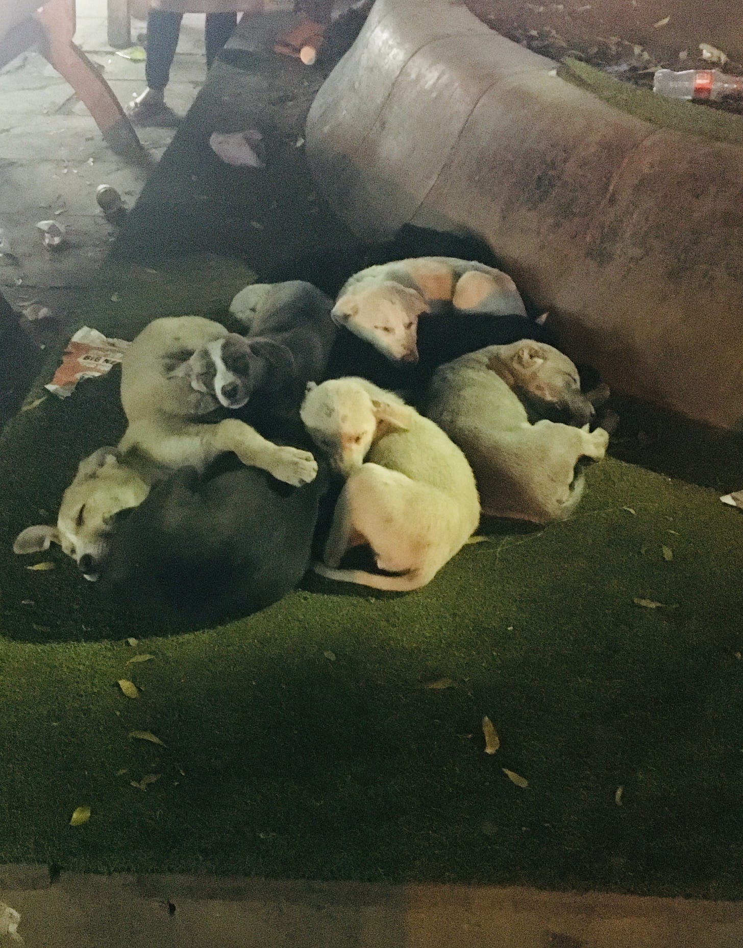 Sleeping strays during lockdown, Delhi. Caregivers risked arrest to make sure they were fed.